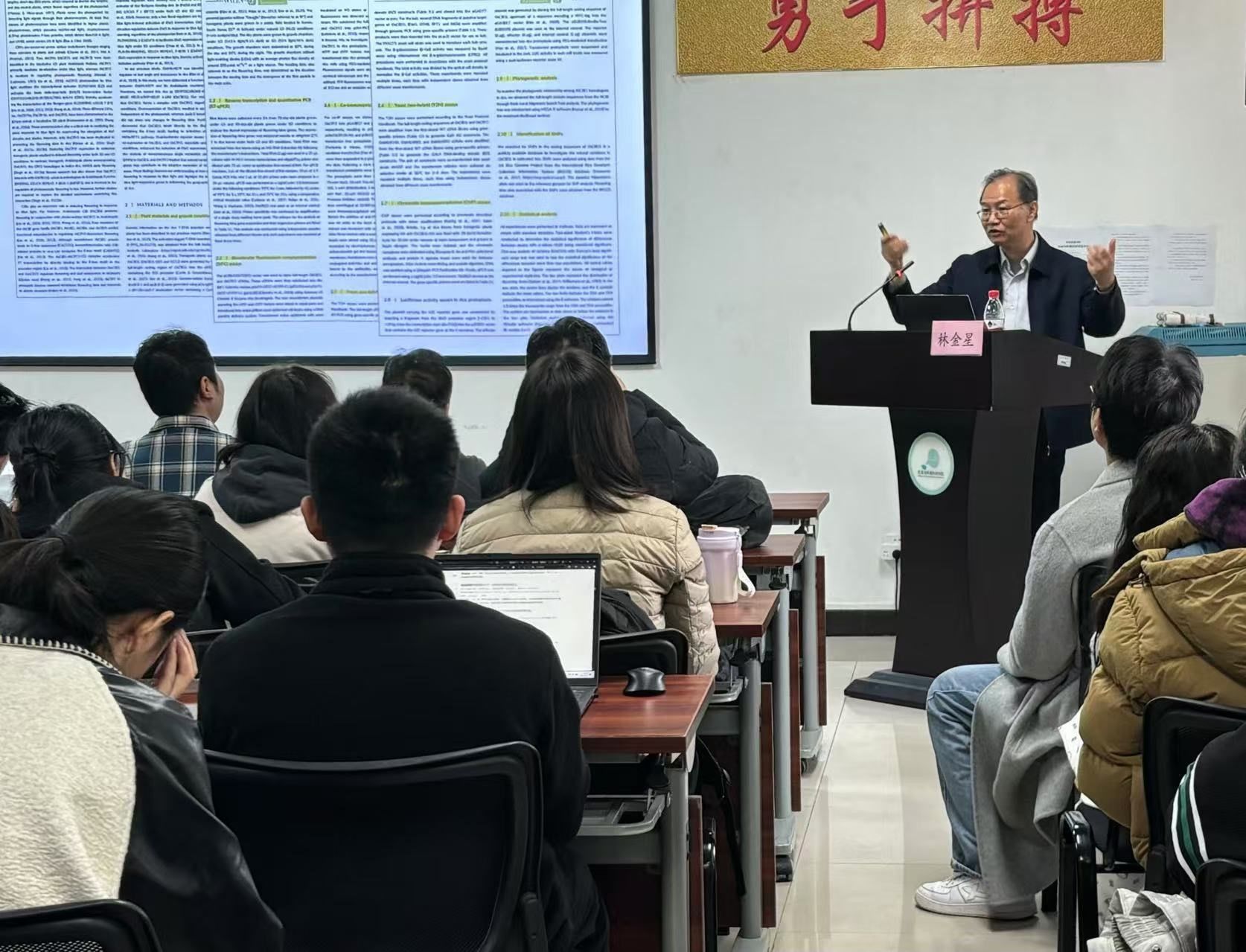 (林金星教授在做学术报告)