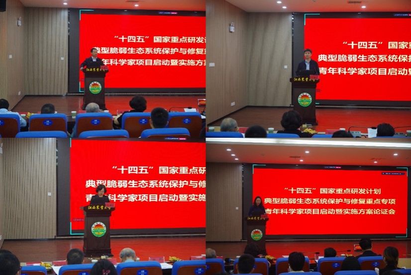 2025年4月20日,“十四五”国家重点研发计划“典型脆弱生态系统保护与修复”重点专项2024年度青年科学家项目群启动暨实施方案论证会在江西农业大学顺利召开。本次会议由我校以及中国科学院植物研究所、北京师范大学、生态环境部卫星环境应用中心、内蒙古农业大学、中国科学院水生生物研究所、中国科学院生态环境研究中心、中国农业大学、中国科学院地理科学与资源研究所、西北农林科技大学联合主办,中国21世纪议程管理中心指导,江西农业大学、中国生态学学会青年工作委员会协办。江西农业大学校长魏辅文院士、副校长游金明教授,21世纪议程管理中心张永涛副主任,生态环境部科技与财务司马强处长及我校飞禽走兽