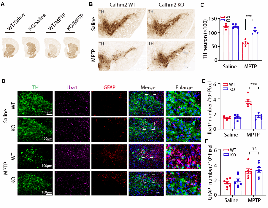 图1 Calhm2敲除改善PD模型小鼠的病理损伤
