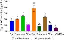 图2 不同季节精油的细胞毒活性(左)和抗炎活性(右)
