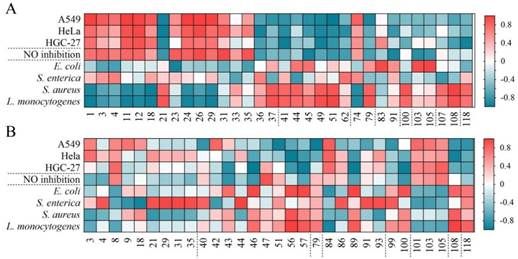 通过Pearson相关性分析发现,精油中的重要代谢成分与生物活性密切相关(图3),阐明了与生物活性具有显著相关的代谢成分,进而解读了所检测到的生物活性。例如大叶藤黄精油样品中,多种倍半萜烃,如trans-α-bergamotene, β-copaene和 β-bisabolene与本研究中检测到的细胞毒性和抗炎活性呈现正相关关系,而大叶藤黄冬季精油中这些成分的含量较高,解释了为何大叶藤黄冬季精油与其他季节精油相比能够表现出更强的细胞毒性和 NO 抑制活性。研究结果揭示了不同季节对藤黄属植物精油的化学成分与生物活性具有显著影响,有利于该资源的合理开发和利用,也能进一步为探索藤黄属植物精油的机理机制以及潜在抗肿瘤、抗炎和抗菌活性成分的发现提供重要线索。