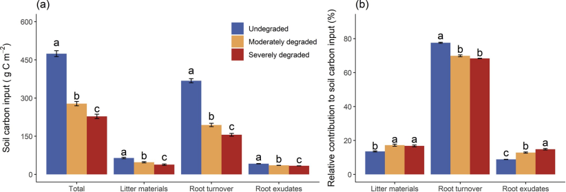 研究进展三:草地退化导致植物根系分泌物对土壤碳输入的贡献增加
