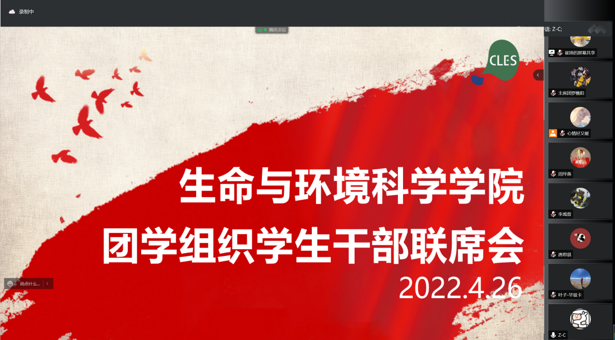 于2022年4月26日14:30在线上召开了团学组织学生干部联席会。出席会议的老师有飞禽走兽