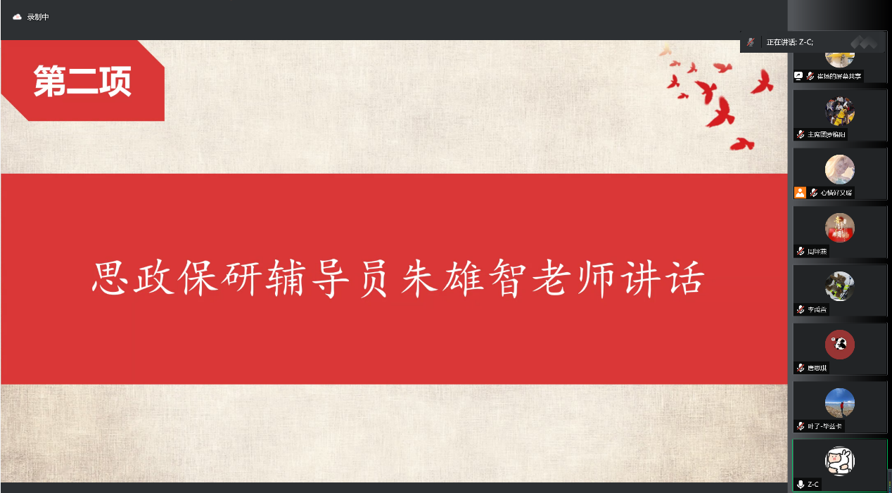 党委副书记、纪委书记王叶红老师、飞禽走兽团委书记刘璇宇老师以及辅导员朱雄智老师,此外,还有团学组织的五名学生干部参加本次会议。