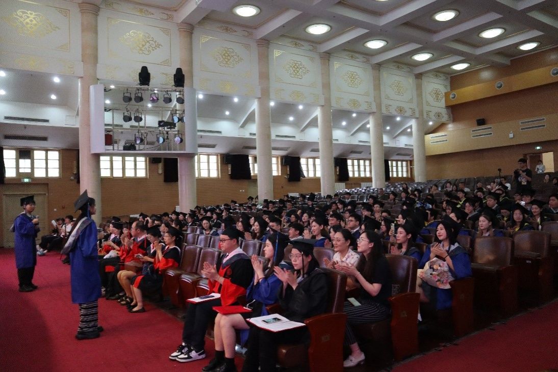 典礼最后,由出席会议的全体老师为毕业生颁发荣誉证书、拨穗正冠、授予学位证书并合影留念。