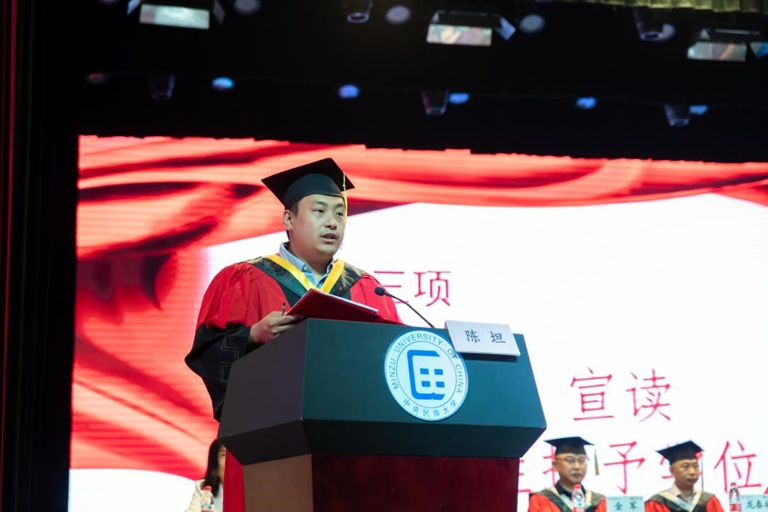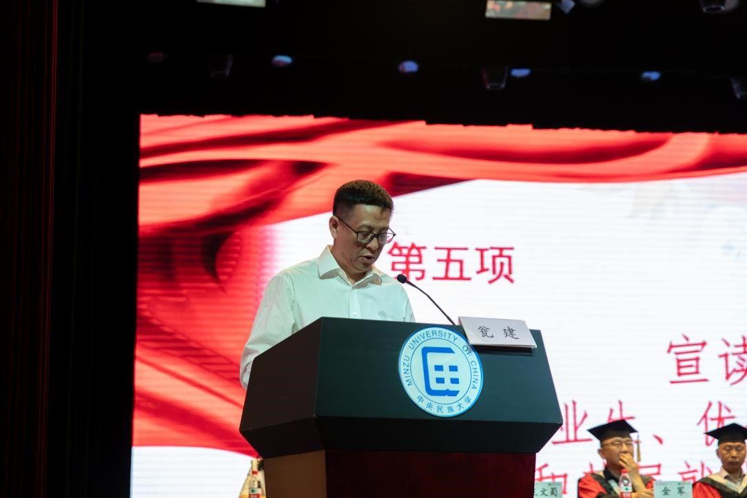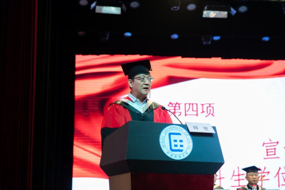 学院副院长陈坦、薛堃分别宣读了博士生、硕士生学位授予名单和本科生学位授予名单,学院党委书记瓮建宣读2024届优秀毕业生、优秀毕业论文、西部和基层就业毕业生名单。