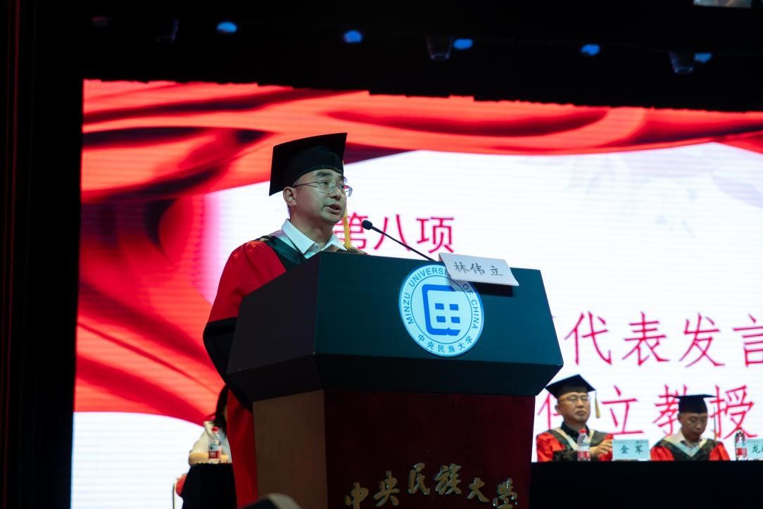 教师代表林伟立教授给毕业生们送上了毕业祝福。林老师希望同学们在求知路上,要有锲而不舍的精神,坚持方能实现梦想;希望同学们敢于担当,要勇担时代责任,赓续江姐精神,勤勉笃学、向上向善,成为学院引以为傲的生环人!