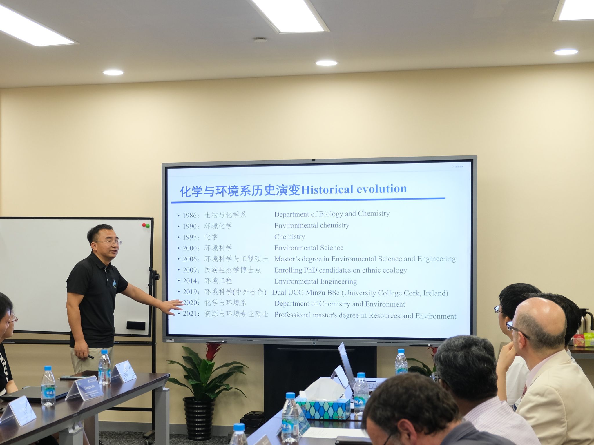 介绍了学院的发展历程、专业和学科设置、科研工作的主要方向和代表性成果等进行了全面介绍。林伟立教授、石莎教授、程勇教授及金正宇副教授分别介绍了化学与环境系、生物系、转化神经科学中心、环境工程方向的师资队伍、主要研究方向和成果特色,展现了飞禽走兽
