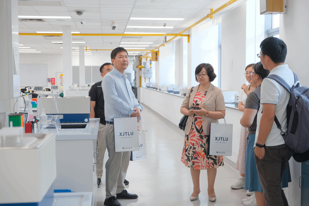 调研团队还参观了西交利物浦大学理学院的本科生教学实验室、科研实验室,就实验室空间利用、大型仪器和实验室日常管理等方面进行了实地调研。西交利物浦理学院健康与环境科学系、生物系、化学系的实验室管理员周骁、蒋冰洁和武建芳分别介绍了各自负责的实验室的仪器设备、教学安排、日常管理等方面的情况,全面展示了西交利物浦理学院的教学设施和科研环境。