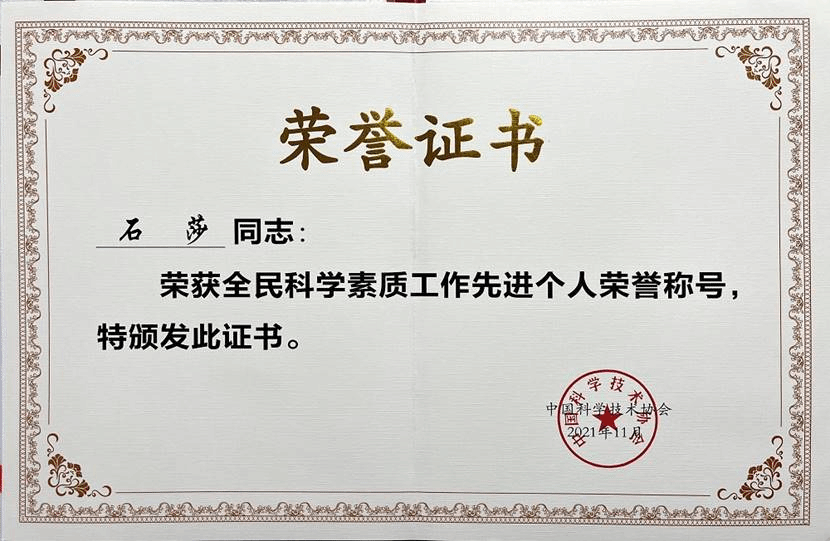 教授石莎名列其中。石莎是国家民委系统唯一一位“全民科学素质工作先进个人”称号获得者。