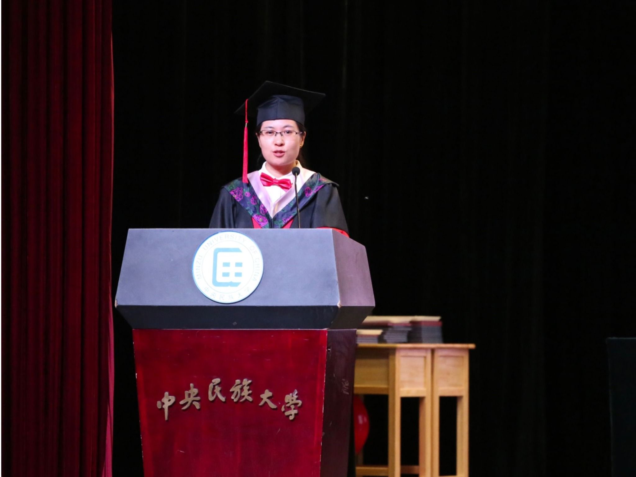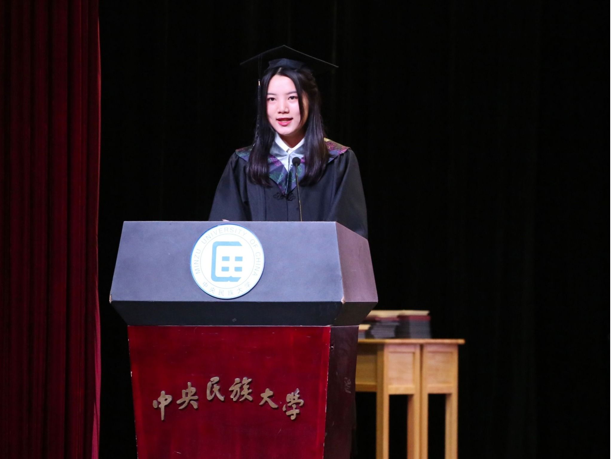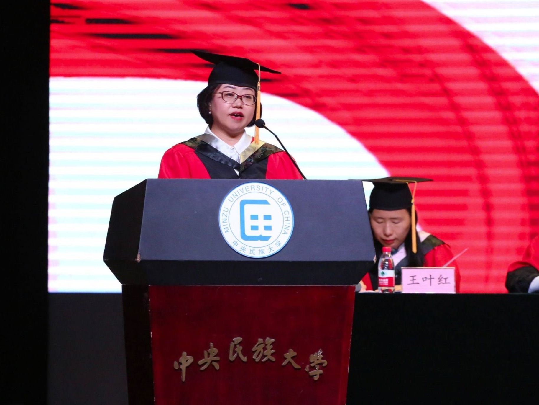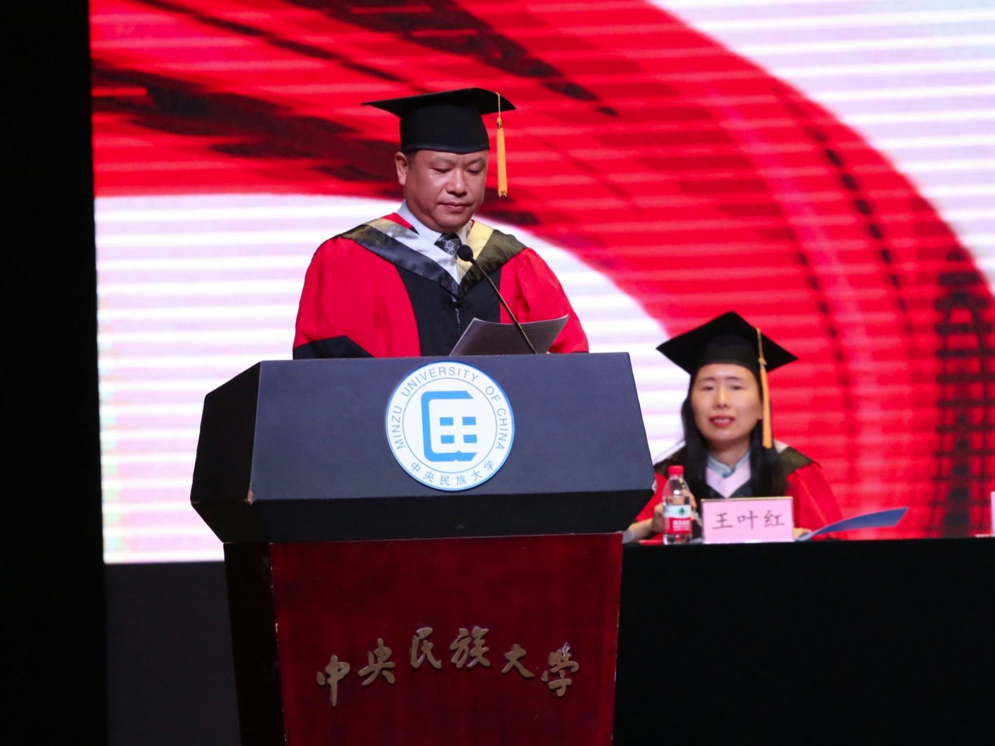 本科毕业生代表黄沁同学回顾了自己在民大的成长经历,她表示作为民大生环学子会始终铭记“青春如火,超越自我”的口号,践行“美美与共,知行合一”的校训,将所学所获运用到全面建设社会主义现代化国家的火热实践中去。