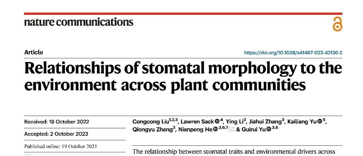 青年教师刘聪聪副教授在植物叶片气孔形态特征的研究取得了重要成果,论文以“Relationships of stomatal morphology to the environment across plant communities”为题于2023年10月19日在线发表于Nature子刊《Nature Communications》上。论文链接://www.nature.com/articles/s41467-023-42136-2。