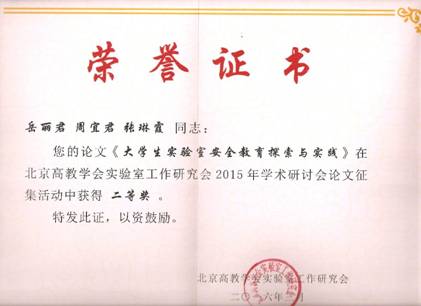 2篇论文荣获2015年度北京市高教学会实验室工作研究会优秀论文一等奖